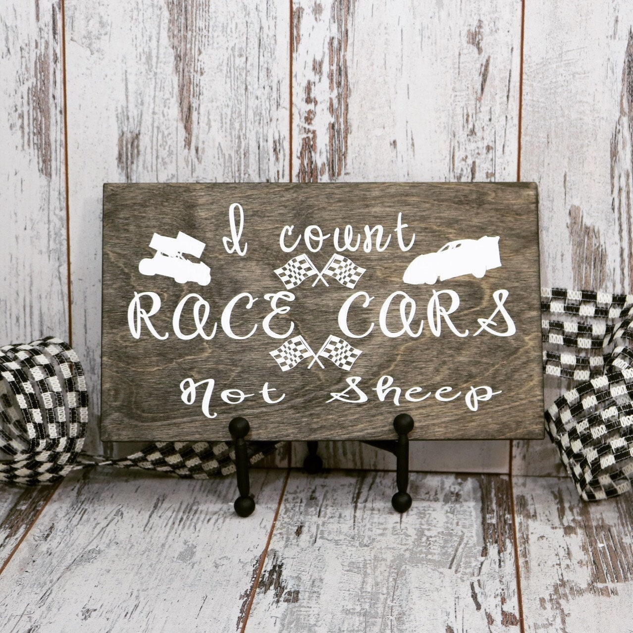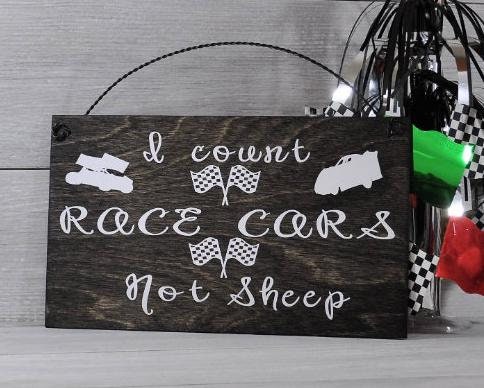 I Count Race Cars Not Sheep Wood Sign
